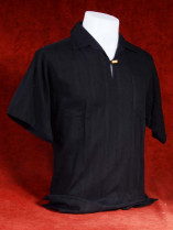 Linnen tropenshirt met knoppje egaal zwart