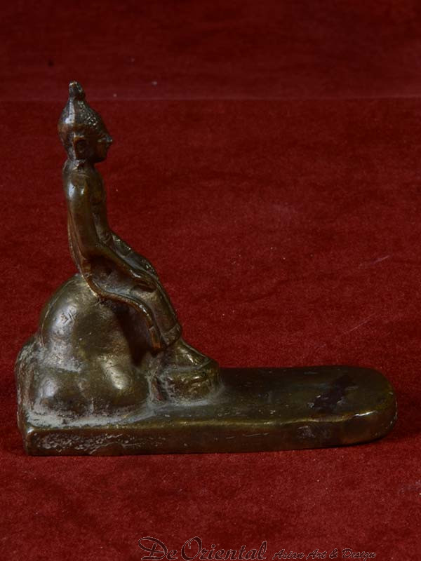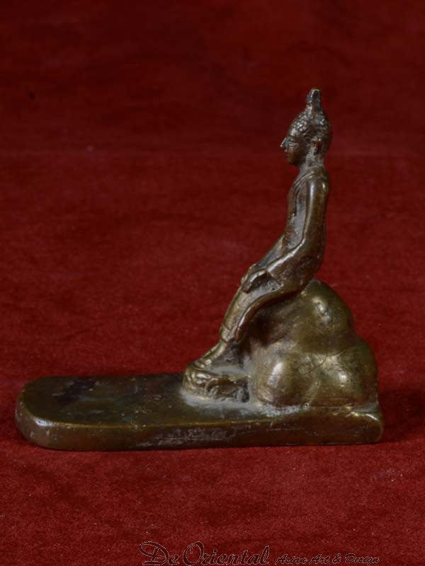 Dit beeldje is vrij uniek omdat dit de pose uitbeeld van de Boeddha welke wacht op de aap en de olifant. Het beeldje is afkomstig uit een prive verzameling.