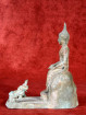 Boeddha zit hier in de westerse zithouding zijn linkerhand op zijn bovenbeen, de rechtse op zijn.