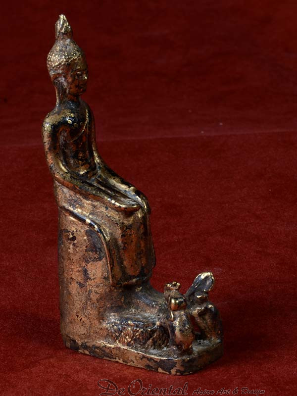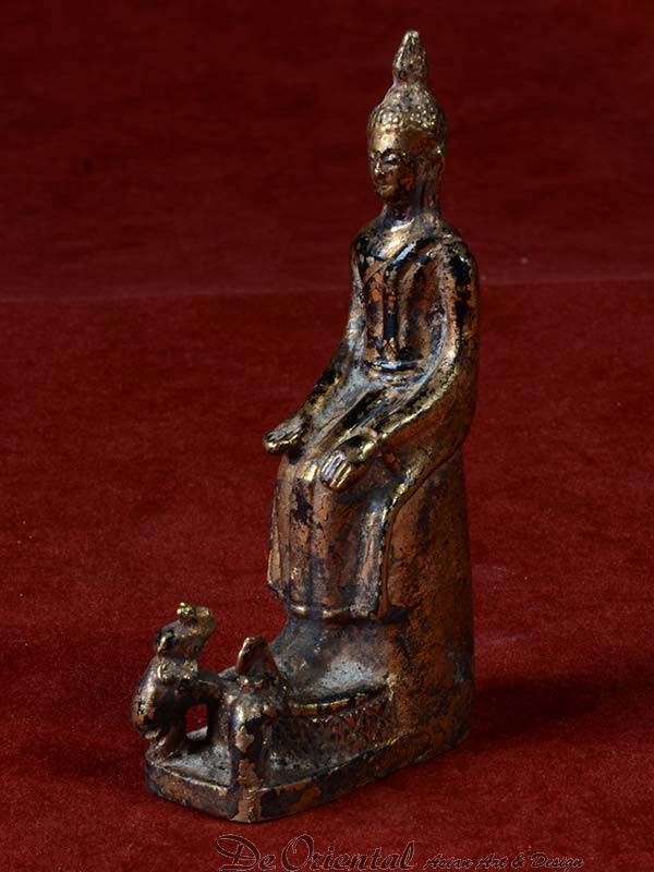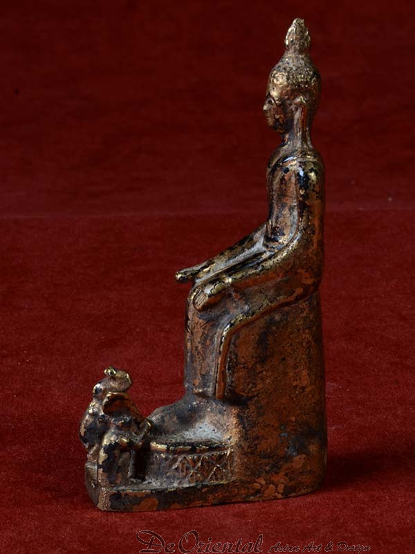 Boeddha zit hier in de westerse zithouding zijn linkerhand op zijn bovenbeen, de rechtse op zijn. Hij zit en wacht om een honingraat van de aap en een waterkan van de olifant in ontvangst te nemen.