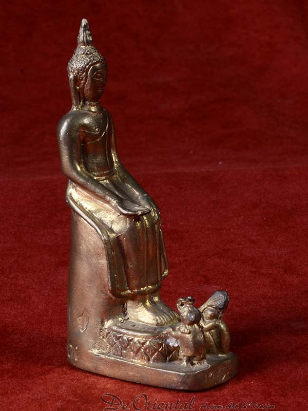Toen Boeddha op een dag in het bos van de natuur aan het genieten was, verschenen er een aap en een olifant om de Boeddha een versnapering te brengen. Deze houding toont dat zelfs de dieren respect hebben voor de Boeddha. Boeddha ontvangt aan zijn rechter zijde (de zijde van de hoogste eer) een kom met drinkwater van de olifant. Aan zijn linkse zijde zit een aapje dat hem een bijenraat met honing overhandigd.