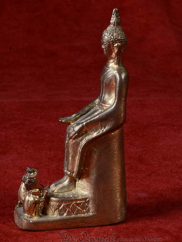 Boeddha zit hier in de westerse zithouding zijn linkerhand op zijn bovenbeen, de rechtse op zijn. Hij zit en wacht om een honingraat van de aap en een waterkan van de olifant in ontvangst te nemen.