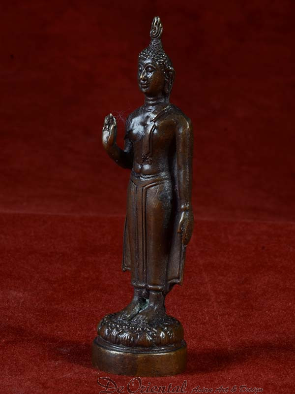 Een uit Thailand afkomstig brons miniatuur beeldje van de maandag Boeddha