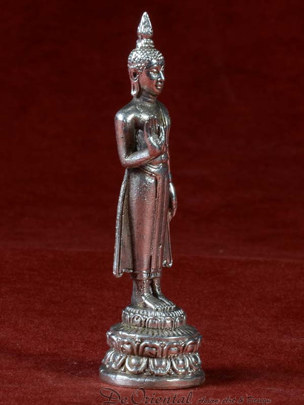 Een uit Thailand afkomstig brons vernikkeld miniatuur beeldje van de maandag Boeddha.