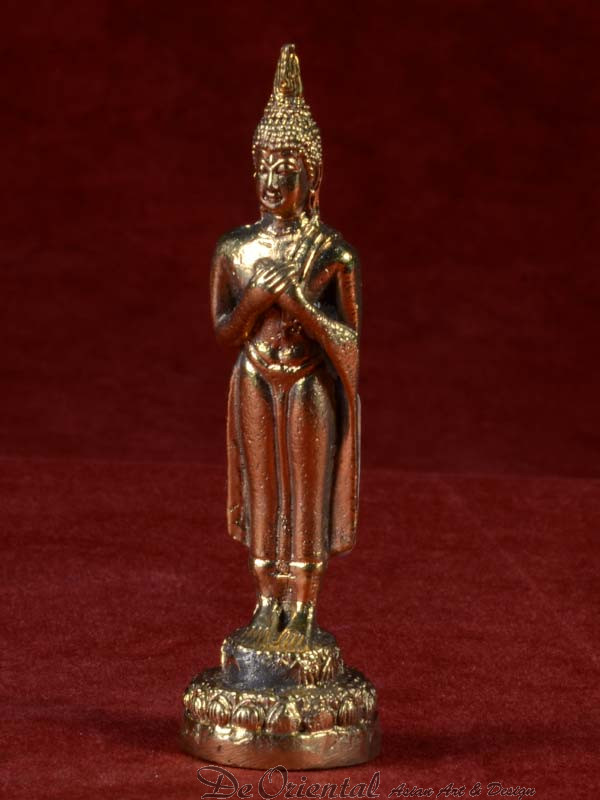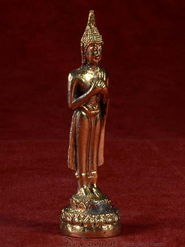 Een uit Thailand afkomstig messing miniatuur beeldje van de vrijdag Boeddha,