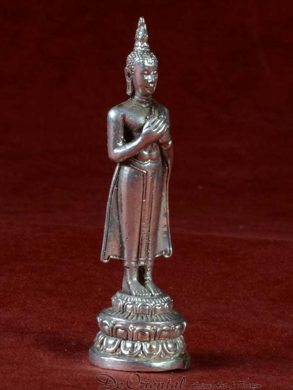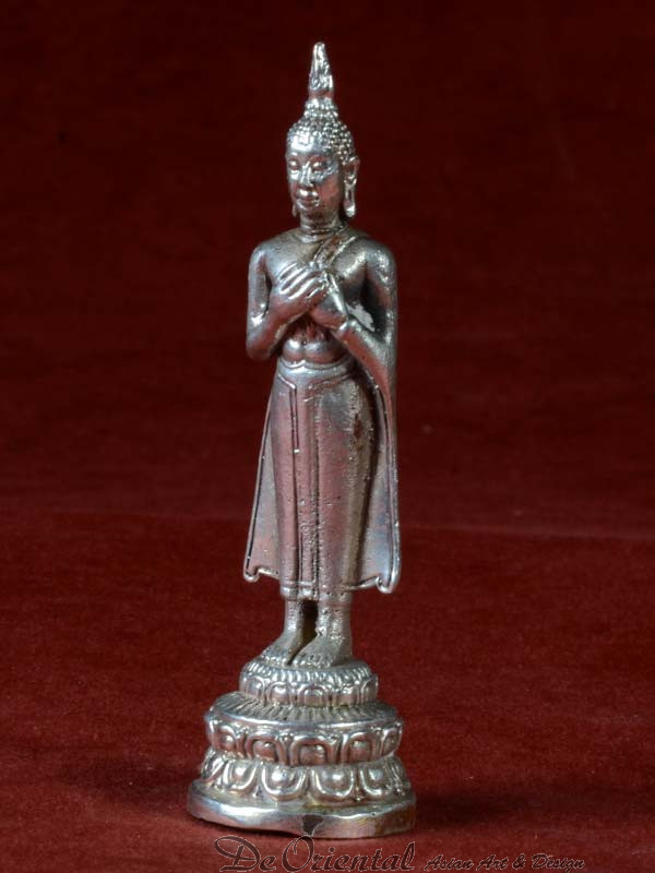 Een uit Thailand afkomstig brons vernikkeld miniatuur beeldje van de vrijdag Boeddha,
