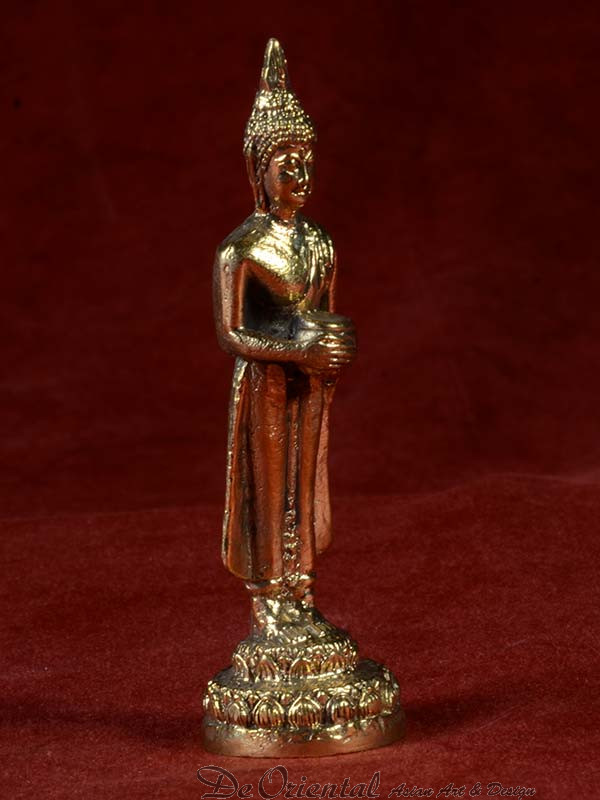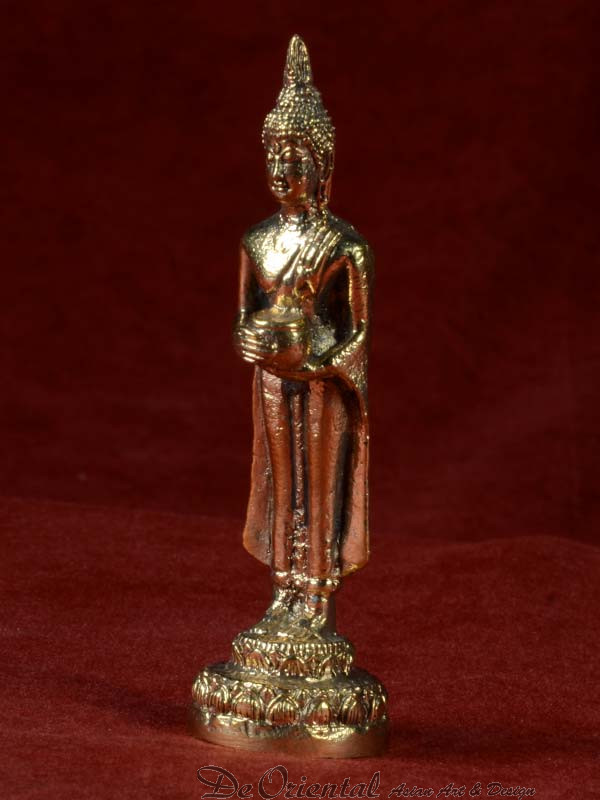Een uit Thailand afkomstig messing miniatuur beeldje van de woensdag Boeddha