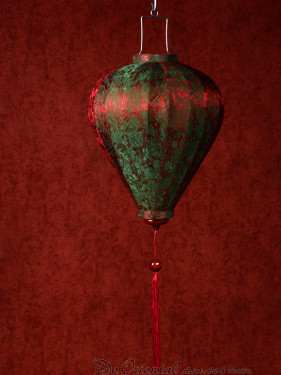 Een decoratieve Chinese lampion lamp van Chinese zijde en bamboe.