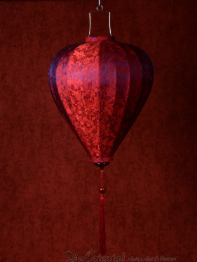 Een decoratieve Chinese lampion lamp van Chinese zijde en bamboe.