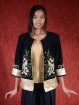 Jasje is afgezet met een dunne elegante bies, en de manchetten een sierlijke print in chineese zijde.