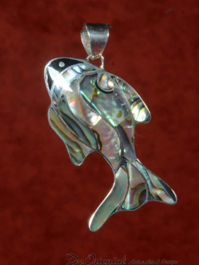 Decoratieve zilveren met parelmoer ingelegde hanger visDecoratieve zilveren met parelmoer ingelegde hanger vis