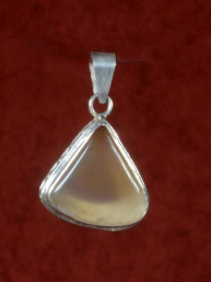 Zeer decoratieve zilveren hanger van een zilveren vis met parelmoer ingelegd.