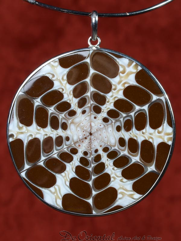 Een op zeer creatieve wijze vervaardigd sieraad van een samenstelling van diverse schelpen.