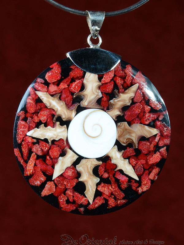 Handgemaakt sieraad van schelp en koraal 52mmHandgemaakt sieraad van schelp en koraal 52mm