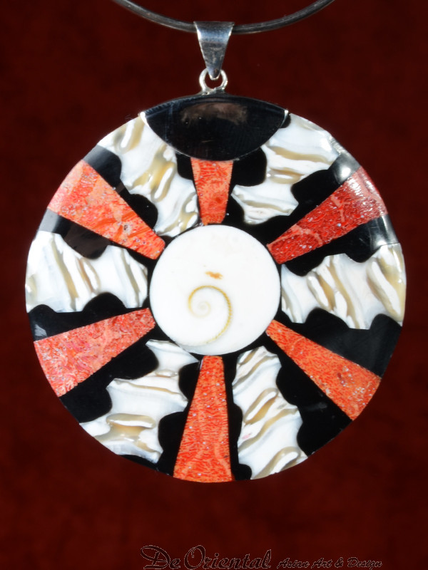 Handgemaakt sieraad van schelp en koraal 57mmHandgemaakt sieraad van schelp en koraal 57mm