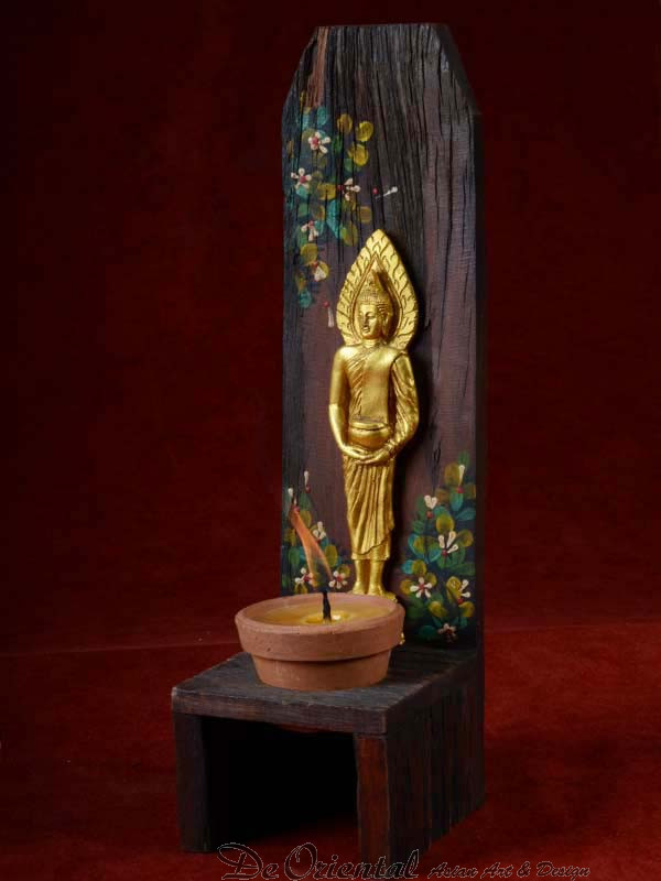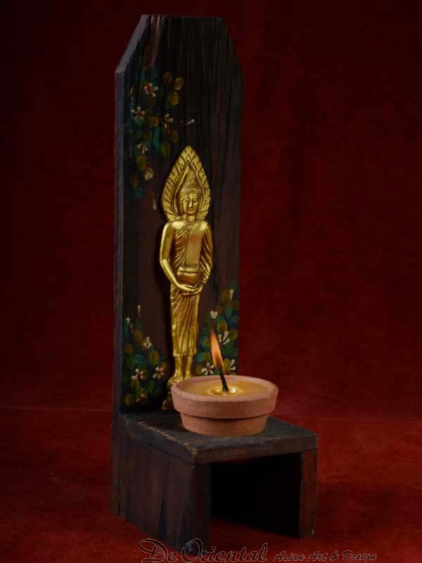 Een handvervaardigde houten kandelaar van een woensdag Boeddha, handgeschilderd