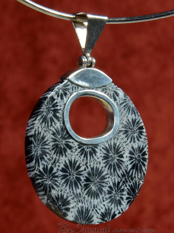 Hanger van grijs sponskoraal in zilveren 925 vattingHanger van grijs sponskoraal in zilveren 925 vatting
