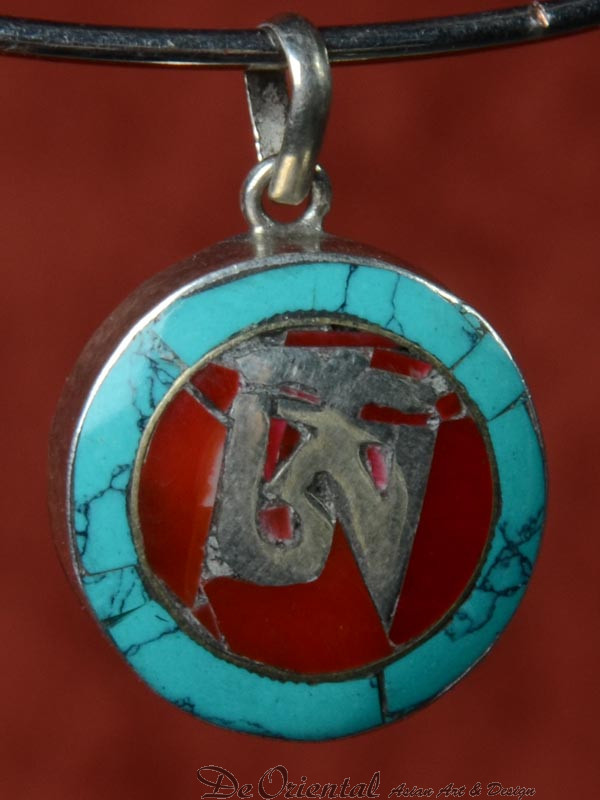 Hanger Om, turkoois en carneool ingelegd in zilver