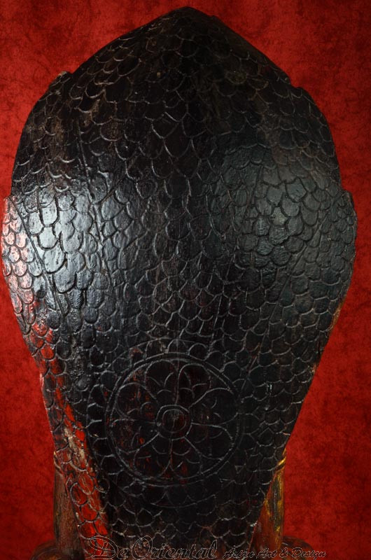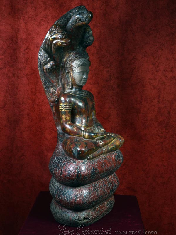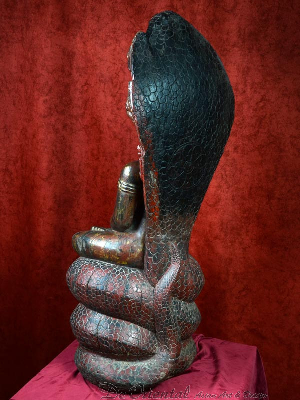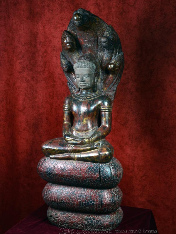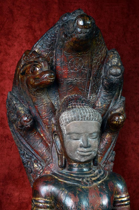 De Khmer Boeddha met de Naga Mucalinda is een zeer decoratief beeld. Wat het beeld zo uniek maakt is dat het lichaam en de Naga uit hout zijn gesneden en dat het hoofd van steen is. Het hout is voorzien van zwart en rood lakwerk, waar later een gouden laag over aangebracht was. Deze is in de loop der tijd vervaagd.