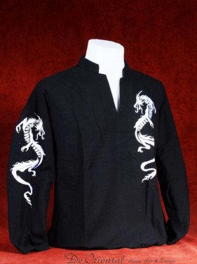 Linnen tropenshirt long sleeve en geborduurde draken zwart-zilver