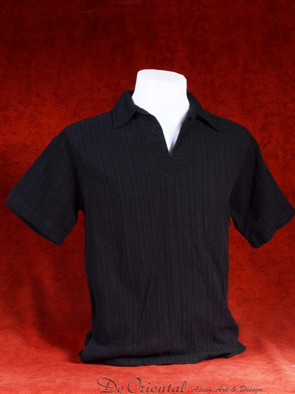 Linnen tropenshirt met puntkraag opgeruwd, egaal zwart