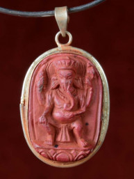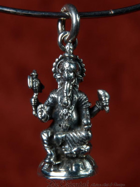 Hanger heeft veel details, om het hoofd van Ganesha een stralenkrans, In zijn handen houd hij de aks, schelp en zijn eten, Zijn rechterhand houdt hij omhoog met de palm naar voren om het kwade af te weren.
