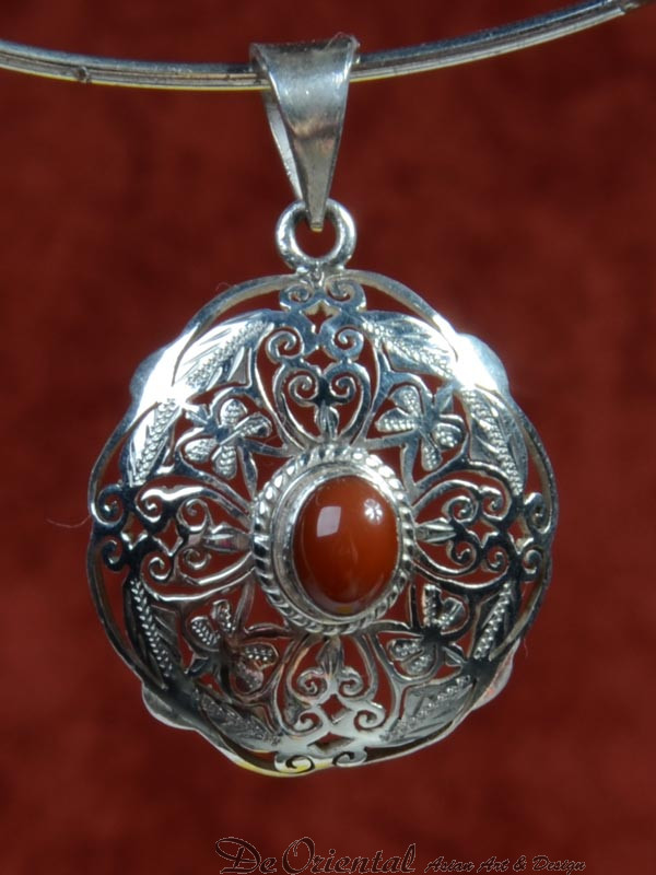 Zeer fraai opengewerkte hanger met een vatting van jaspis Zeer fraai opengewerkte hanger met een vatting van jaspis Zeer fraai opengewerkte hanger met een vatting van jaspis