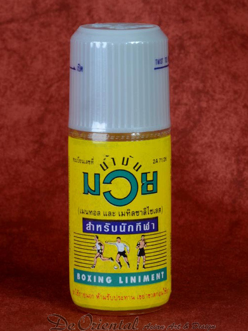 De enige echte originele Thaise Namman Muay Thai Boking olie. Deze olie werd in eerste instantie op de markt gebracht voor Thai boksen. Het beperkt, blauwe plekken en kneuzingen van de huid en spierweefsel.De olie wordt voor het sporten op de huid aangebracht als bescherming en opwarming.Na het sporten kan de olie op de beschadigde of pijnlijke plek worden aangebracht, waarna de verlichting meteen voelbaar is.
