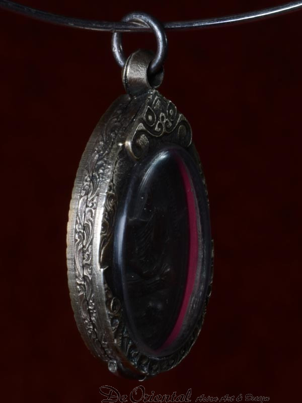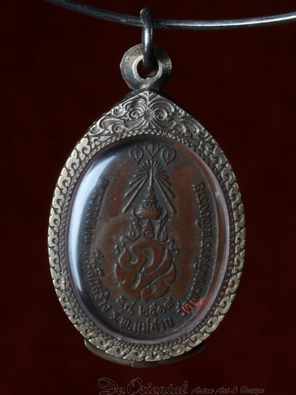 Op het amulet is aan de voorzijde de huidige koning Bhumipol afgebeeld (Rama 9) en op de achterzijde het symbool van het koninklijk huis.