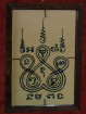Aan de achterzijde is een heilige spreuk voor afwering van kwaad afgebeeld.