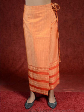 Traditionele Thaise satijnen omslagrok met gouddraad. Oranje III.