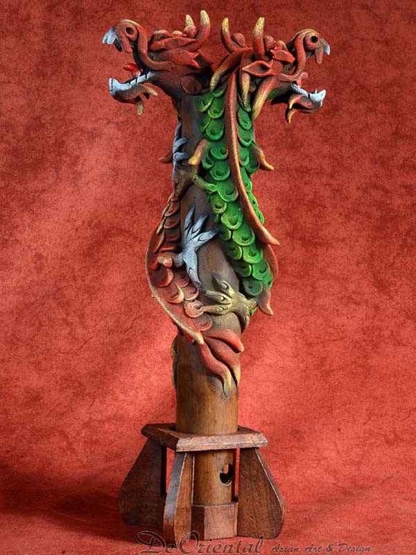 De houder is vervaardigd van bamboe, de draken zijn gemaakt van een geknede houtmix en met de hand geschilderd.